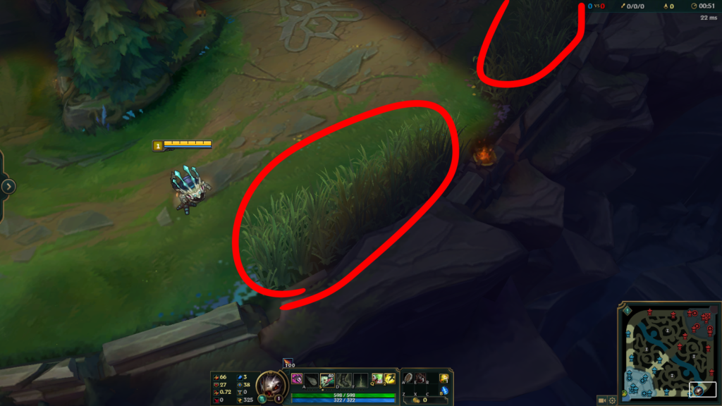 基本的に視界が無く、ここの視界をとれるかどうかでレーン戦の安定度が変わってくる。