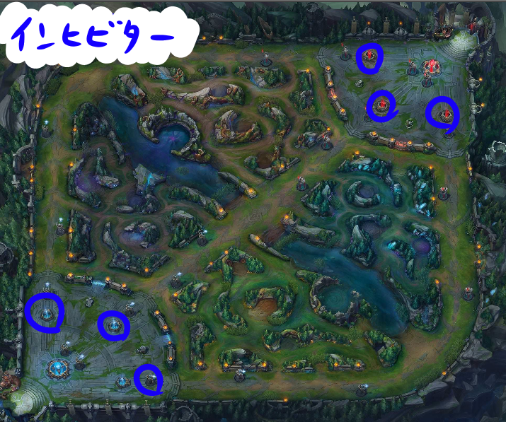 これを破壊したレーンに、自陣から強力なミニオン(スーパーミニオン)が湧くようになる。