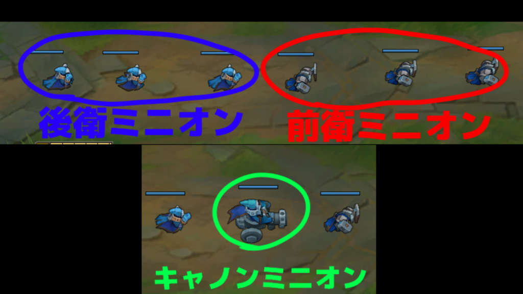 レーンミニオンは6~7匹がセットで湧き、この1セットのことを「1ウェーブ」と数える。