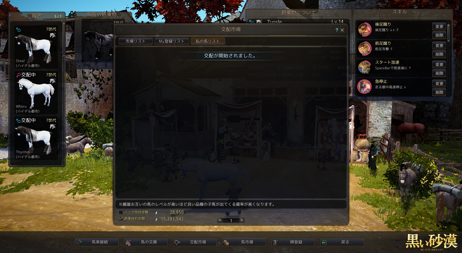 で、親馬たちはスキルがとっても微妙なので市場では売れない…