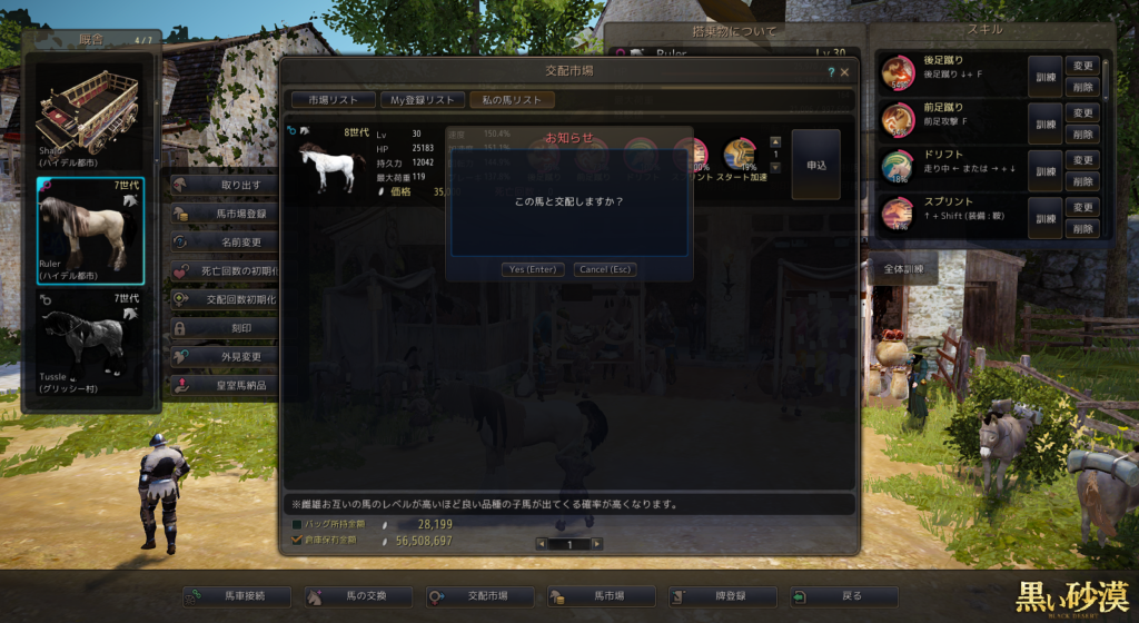 今回の♀は、かなりスキルが優秀なので、市場に流しておきました。