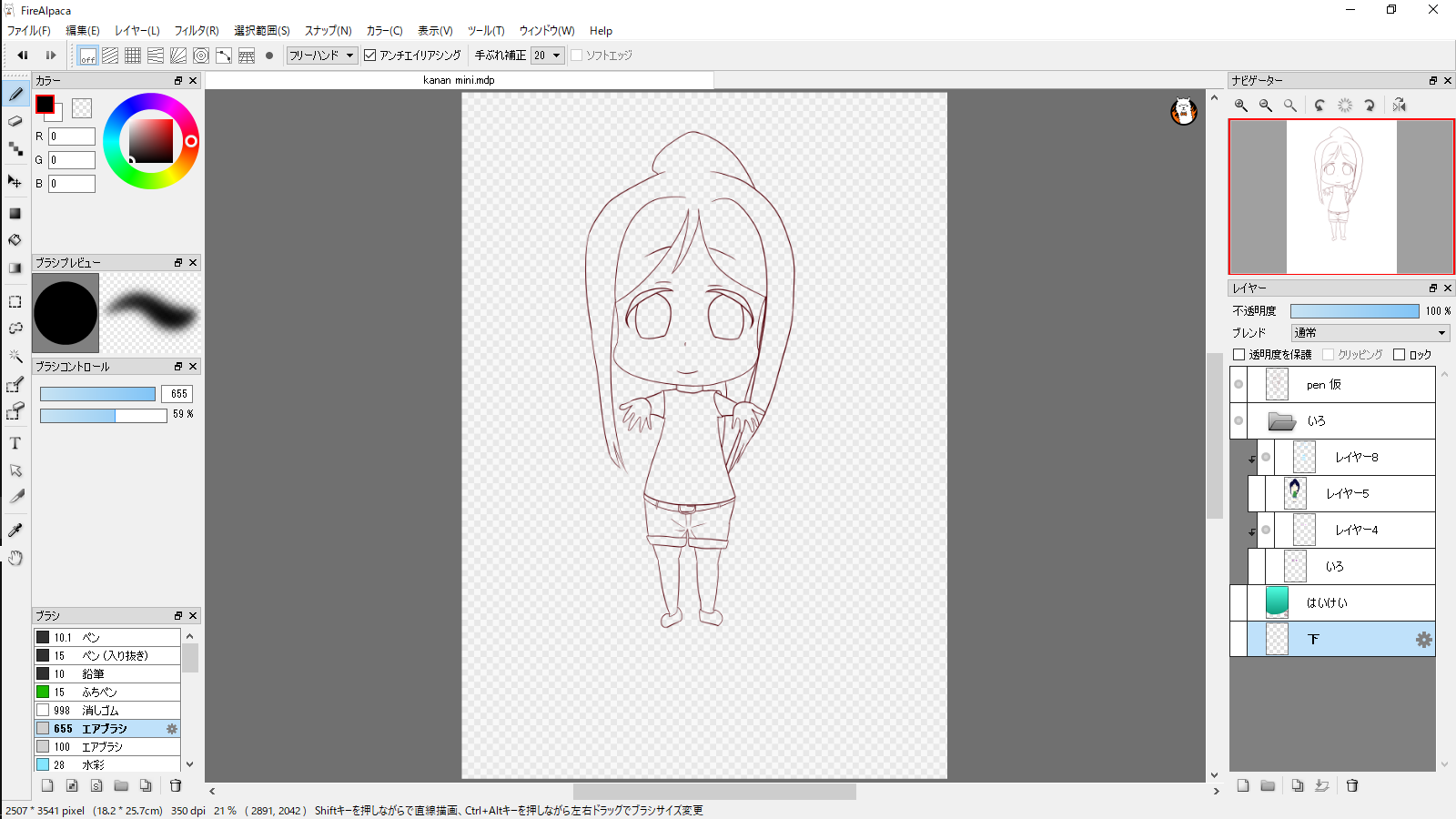 右上に「たんぽぽ・さつき・かんな」と見えますが、これを切り替えると、塗りの感じが変わります。デフォルトがかんな。