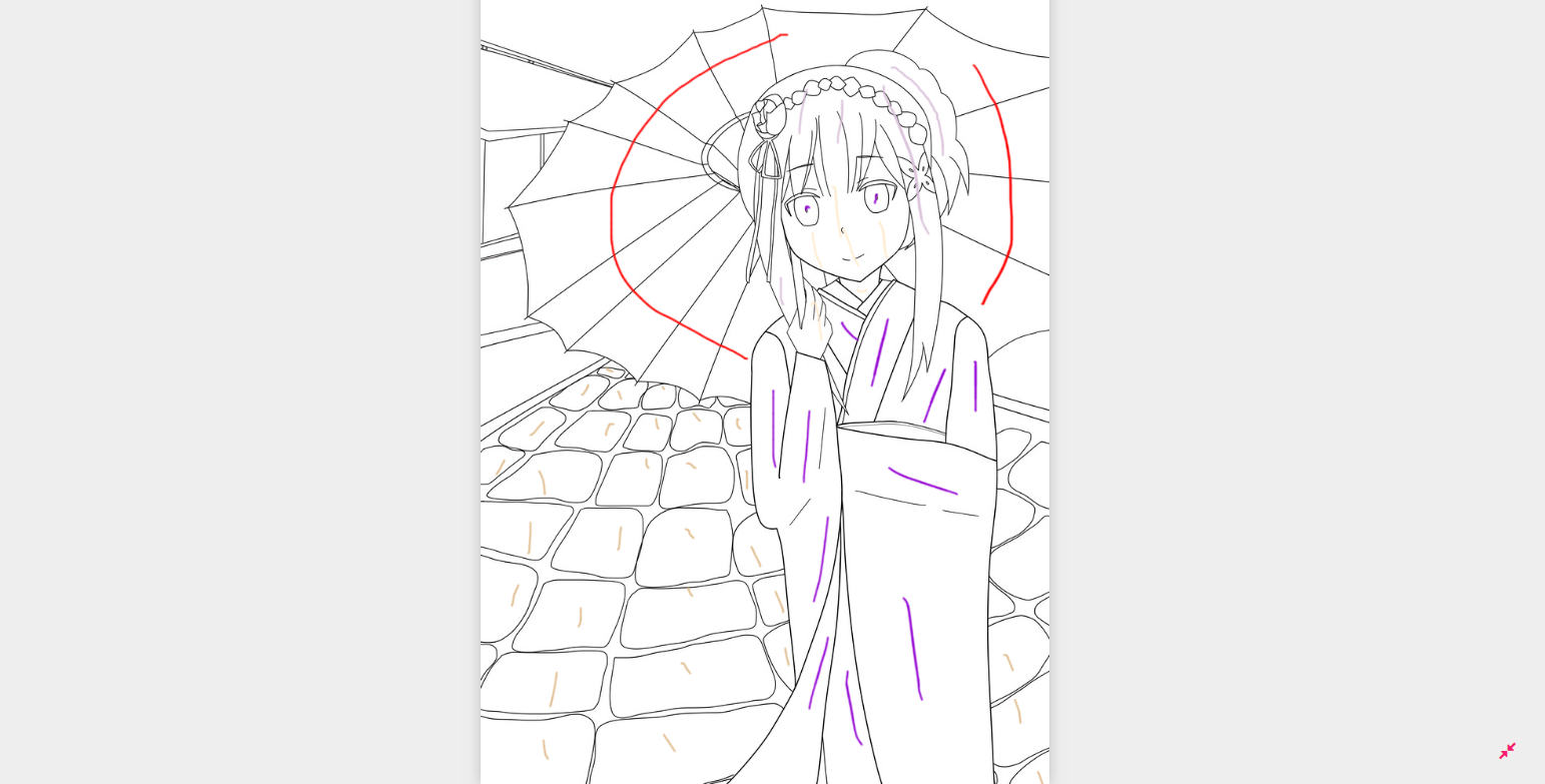 細かいところに色を置きたいときは、線画キャンバス右下の矢印をクリックすることで、線画を拡大することができます。