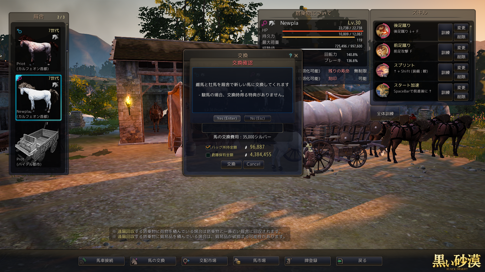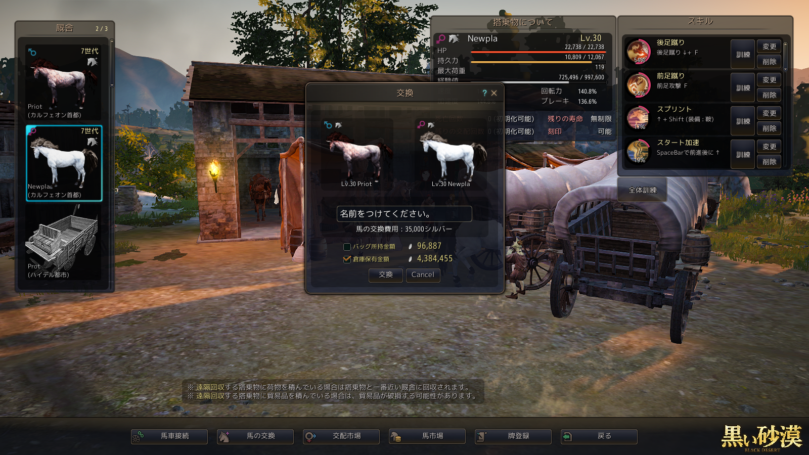 交換ではあまりスキルやらレベルやらは関係ないような気がしますが…
