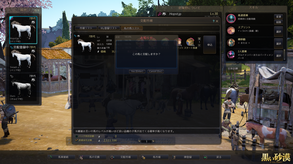 …スキルは微妙ですが、どちらの馬も、父か母が8世代です。