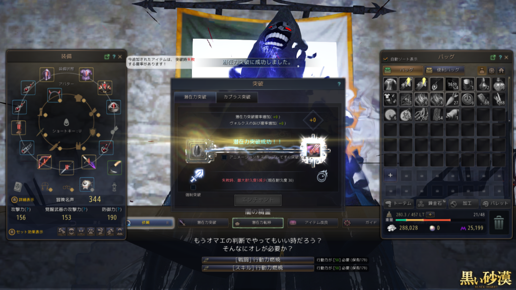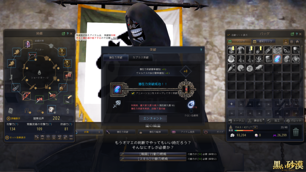 ボス防具の強化が初めてで(しかも0からの強化で)少し緊張しましたが……