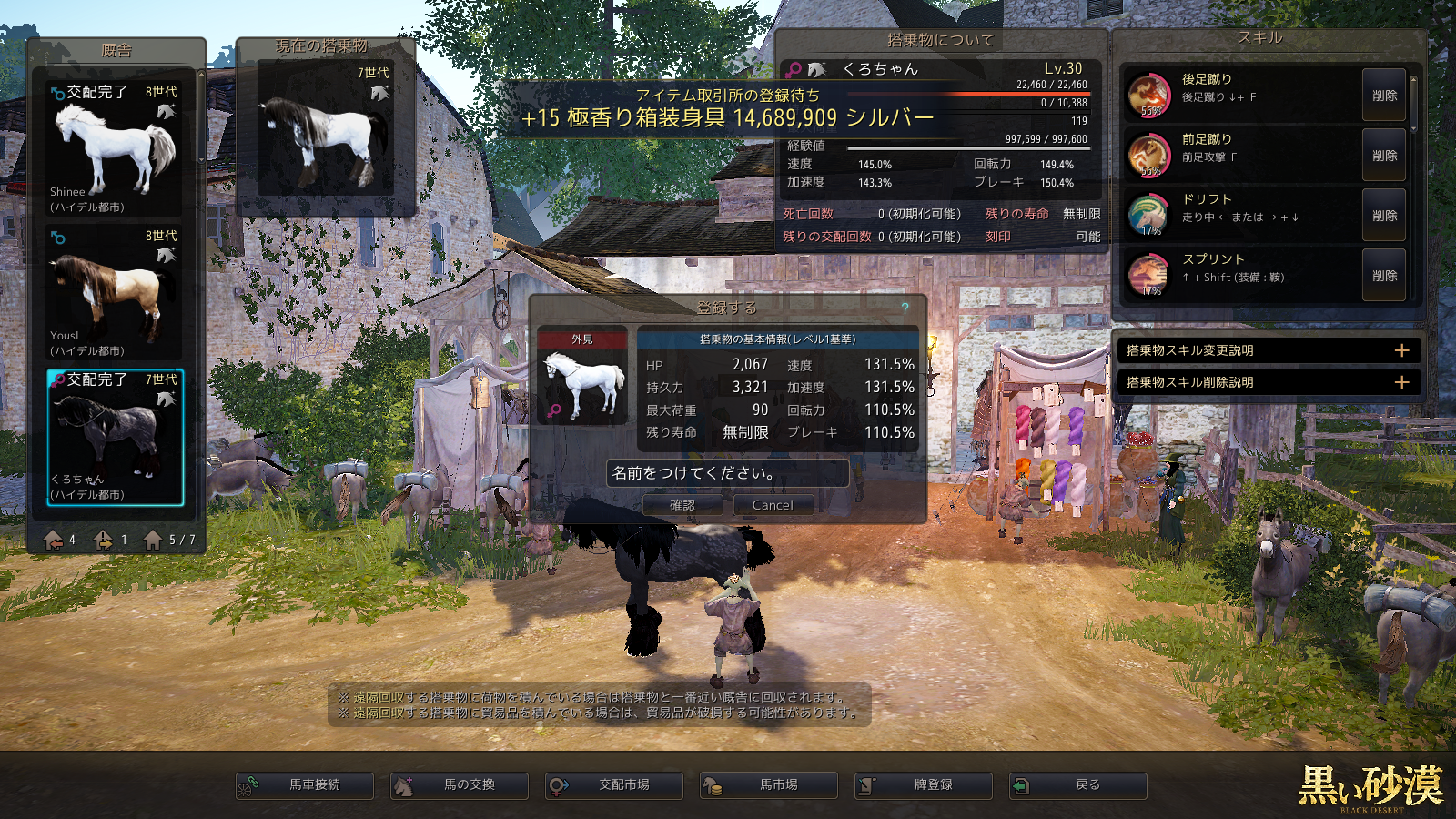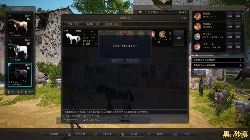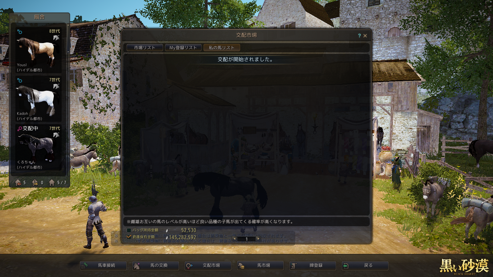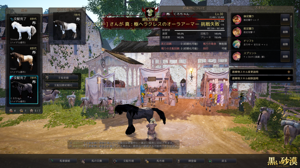 今回は、8世代白馬と7世代黒馬の交配です。