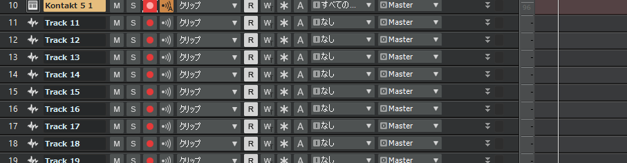 その後に、オーディオトラックを録音待機にして、KONTAKT5のトラックを再生・録音すればOK。