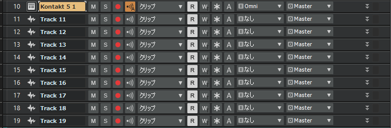 まずは、前回パラアウトの設定をしたKONTAKT5のトラックを選択。