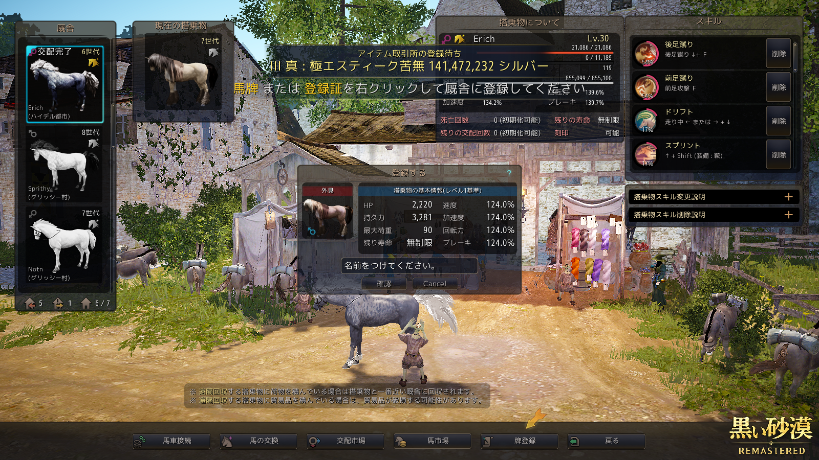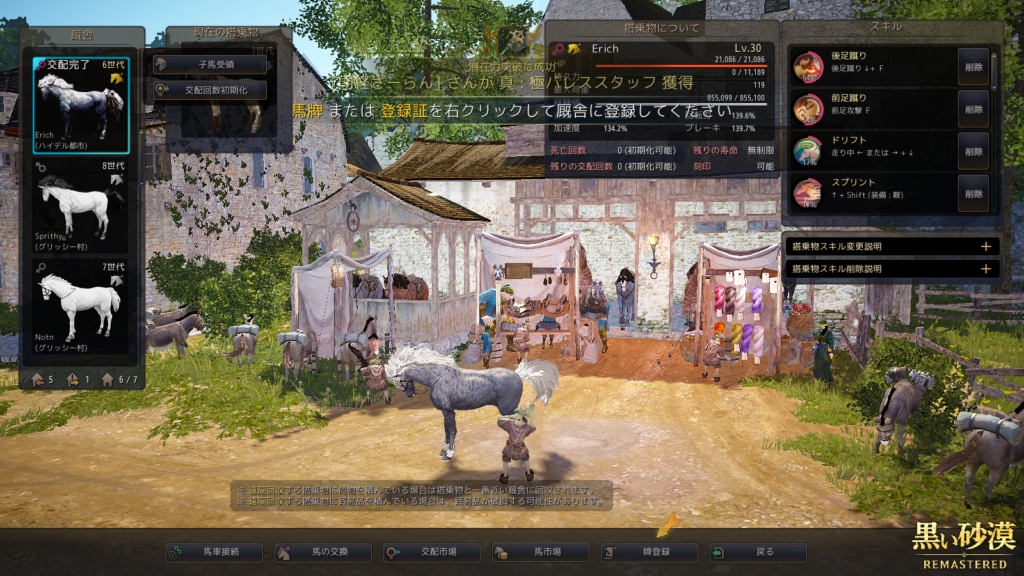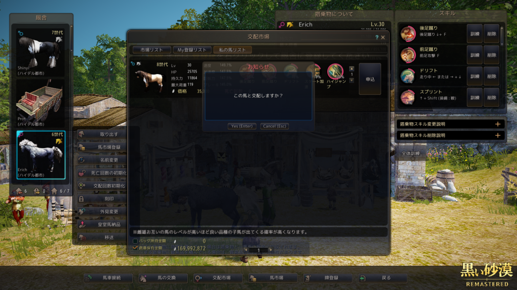前回、次に交配させる2頭を決めてはいたんですが、レベリング終わってみるとスキルセットがかなり渋くて……