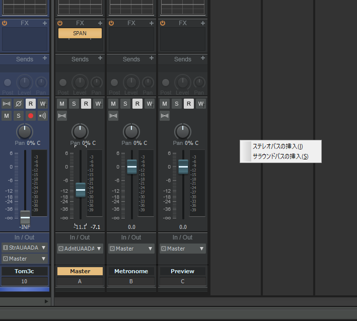 マスターフェーダーや、クリックのフェーダーの横にスペースがあるので、そこを右クリック。