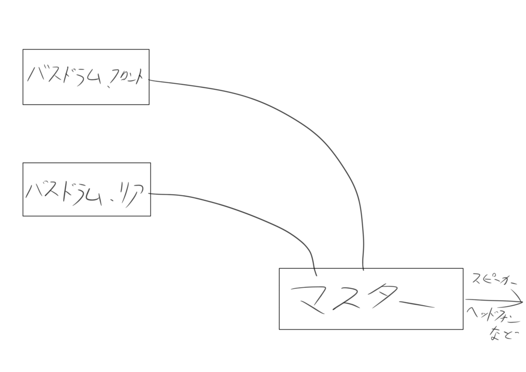 こうすることで、フロントとリアのバランスを変えずにバスドラムの音量を調整することができるように。