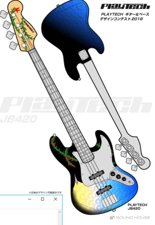先日、プレイテック(サウンドハウスさんのプライベートブランド)のベースデザインコンテストに応募しました。