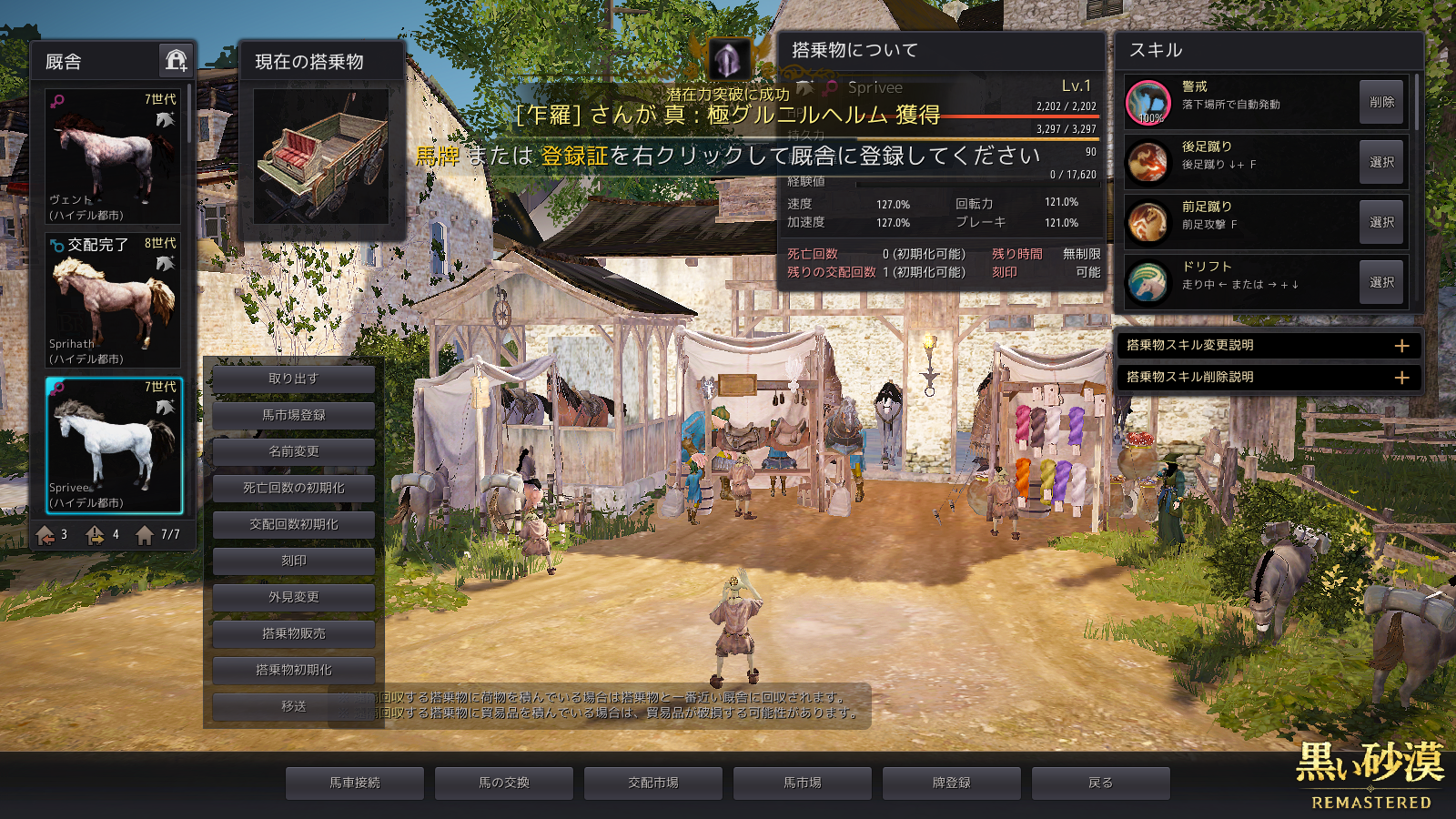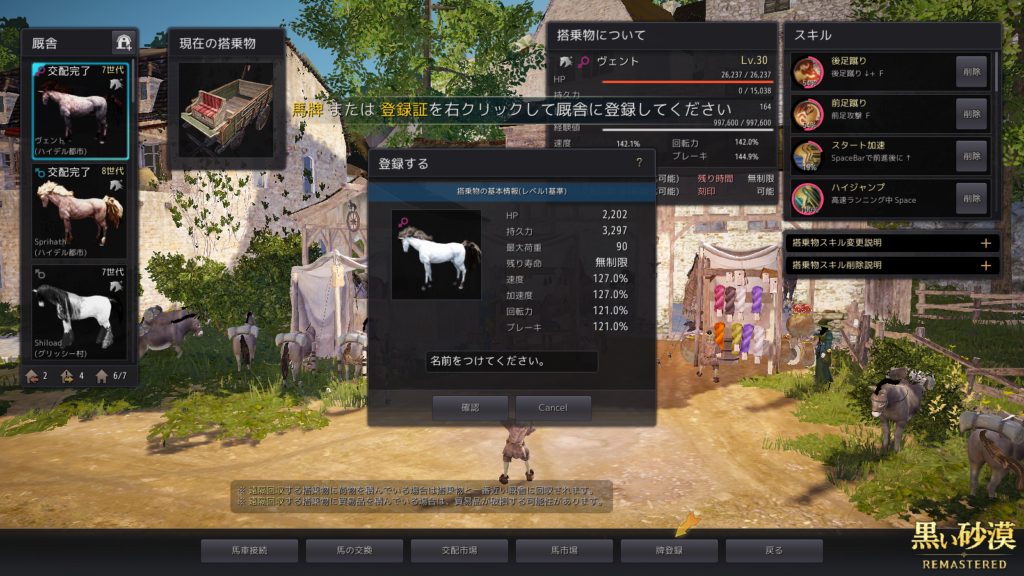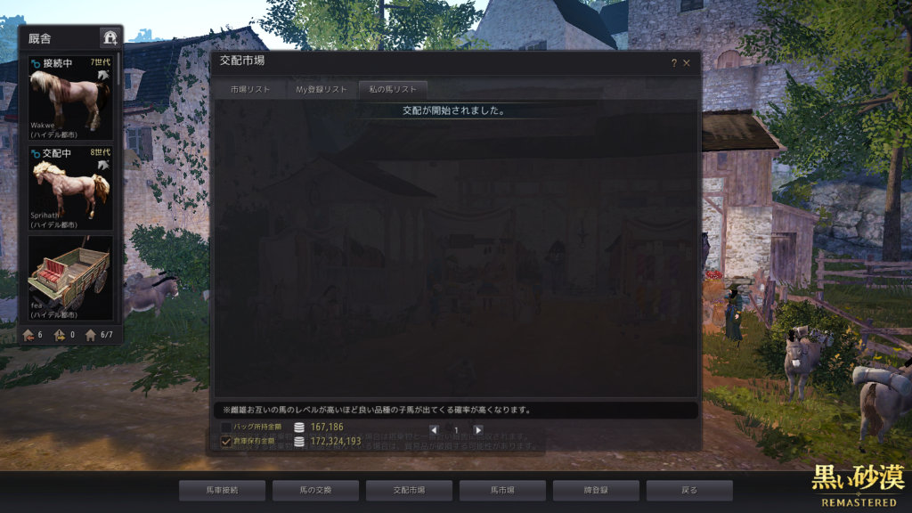 理由としては、たまりにたまったLv1の♂馬達を、一斉に馬車で育てているから……