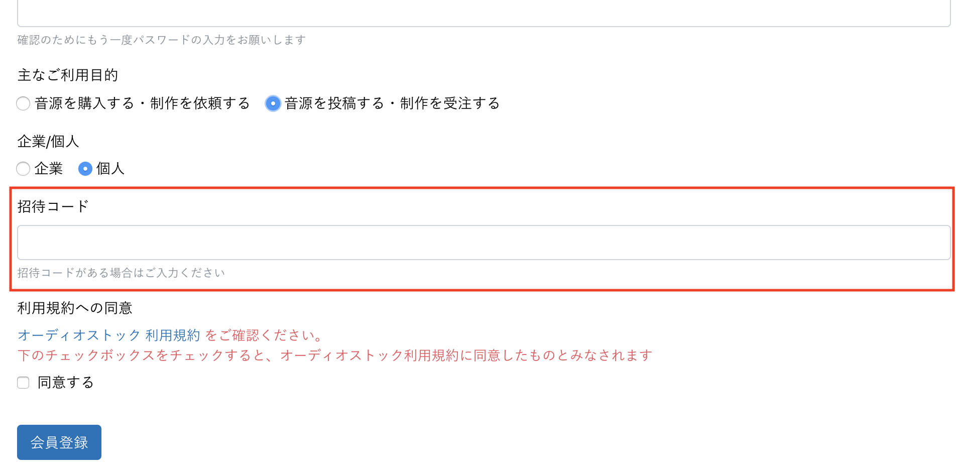 いろいろと調べていたら、オーディオストックというサイトを見つけたので、さっそく登録してみました。