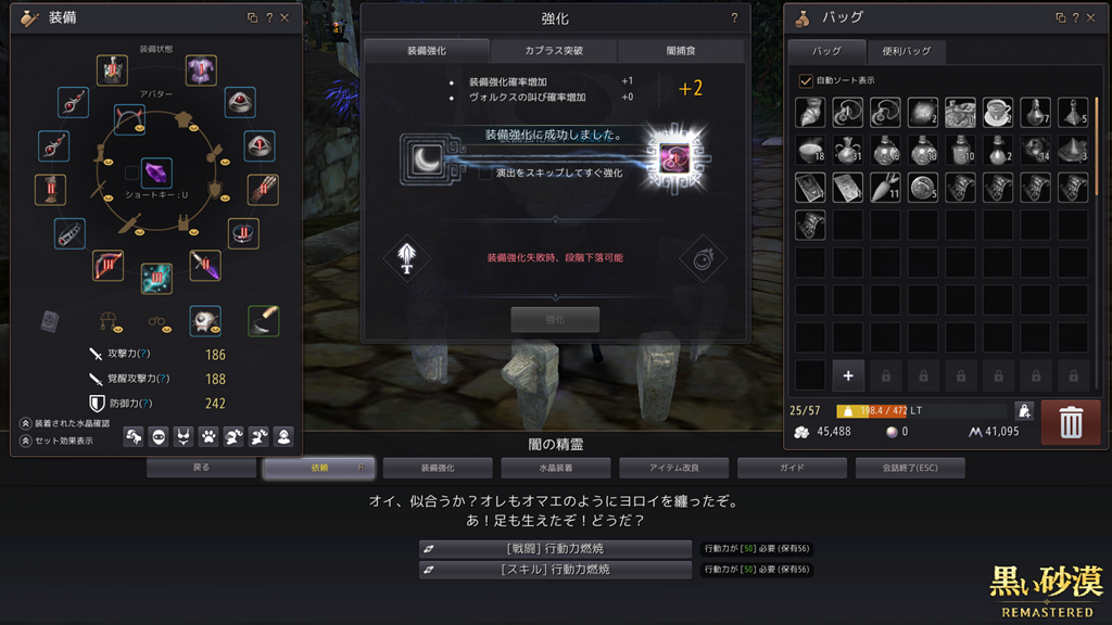 まずは、昨日入手したイヤリングの耐久が60余っているので、こちらを強化します。